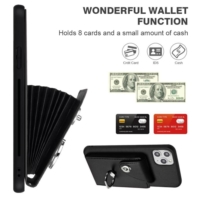 For iPhone 11 Pro Organ Card Bag Ring Holder PU Phone Case with Lanyard(Black)