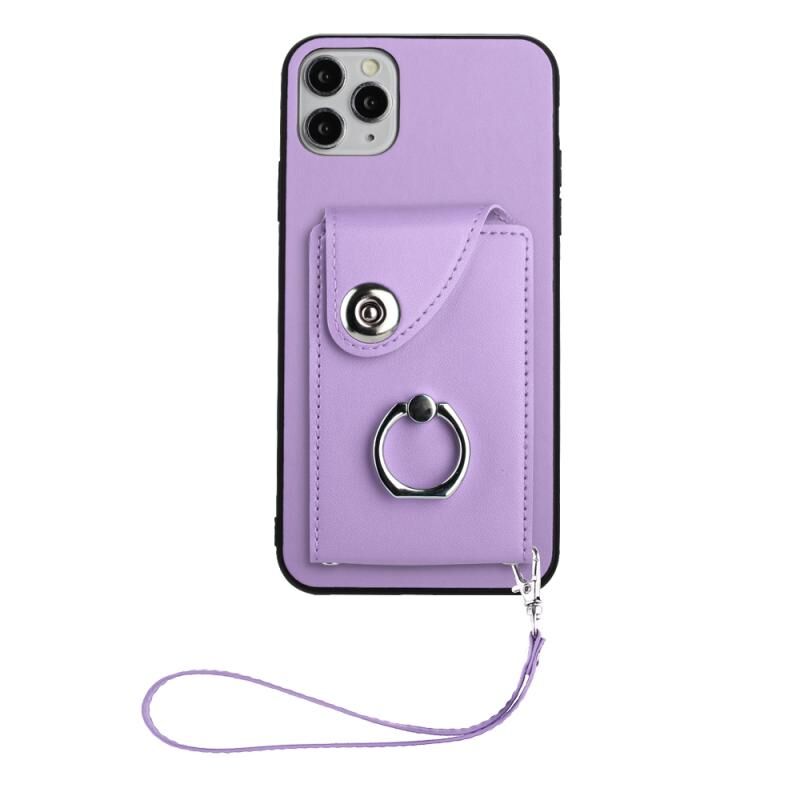 For iPhone 11 Pro Organ Card Bag Ring Holder PU Phone Case with Lanyard(Purple)