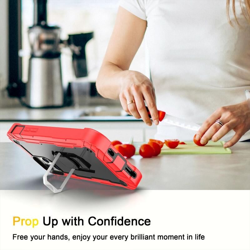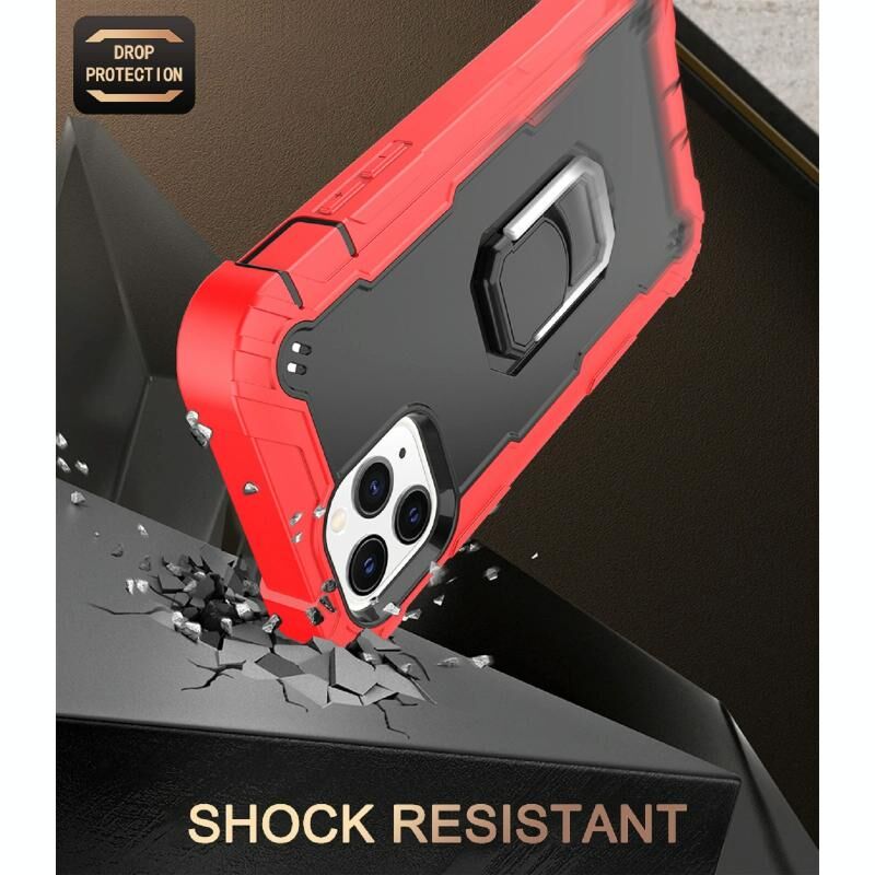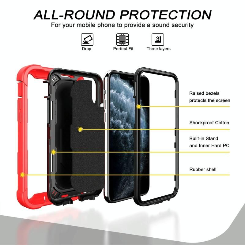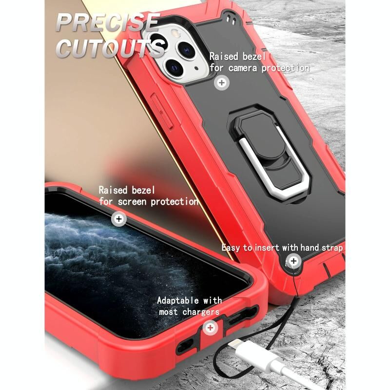 For iPhone 11 Pro PC + Rubber 3-layers Shockproof Protective Case with Rotating Holder (Red + Black)