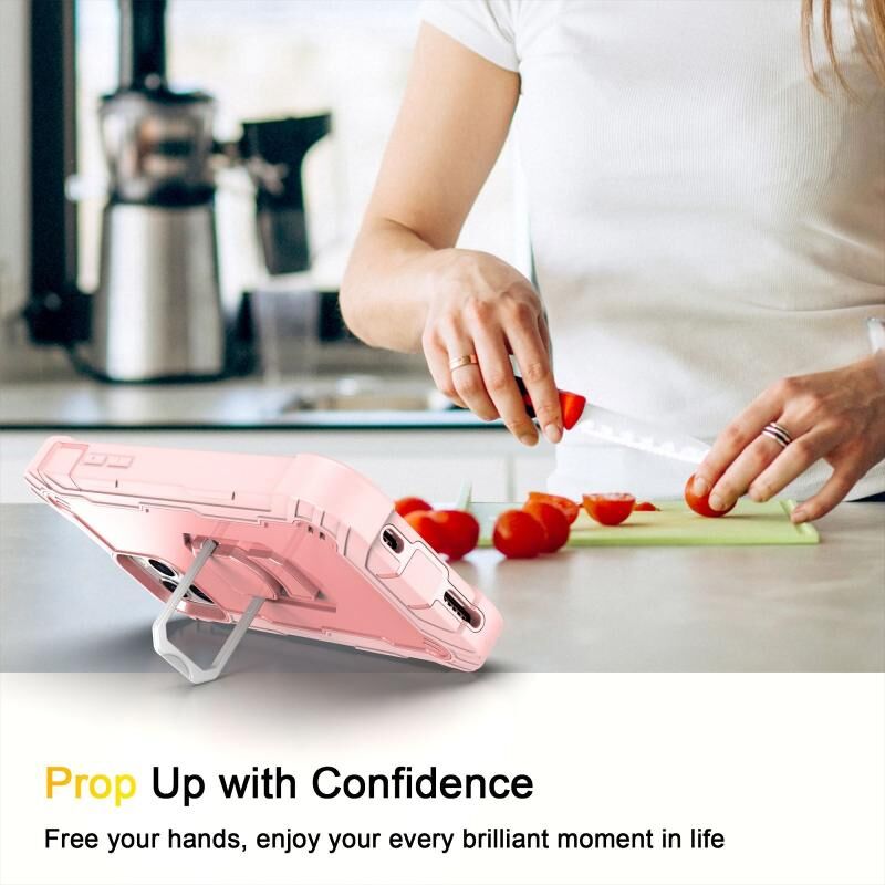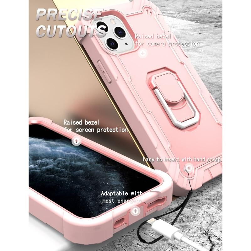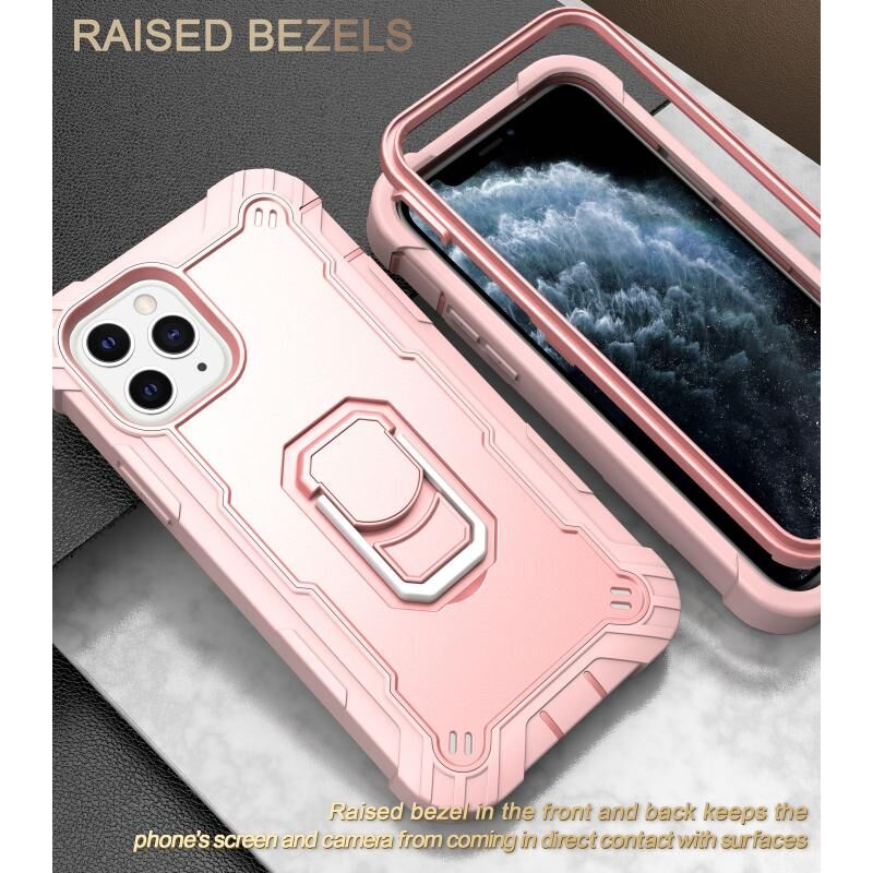 For iPhone 11 Pro PC + Rubber 3-layers Shockproof Protective Case with Rotating Holder (Rose Gold)