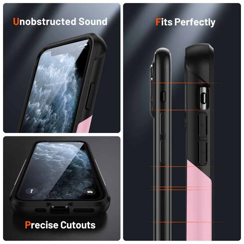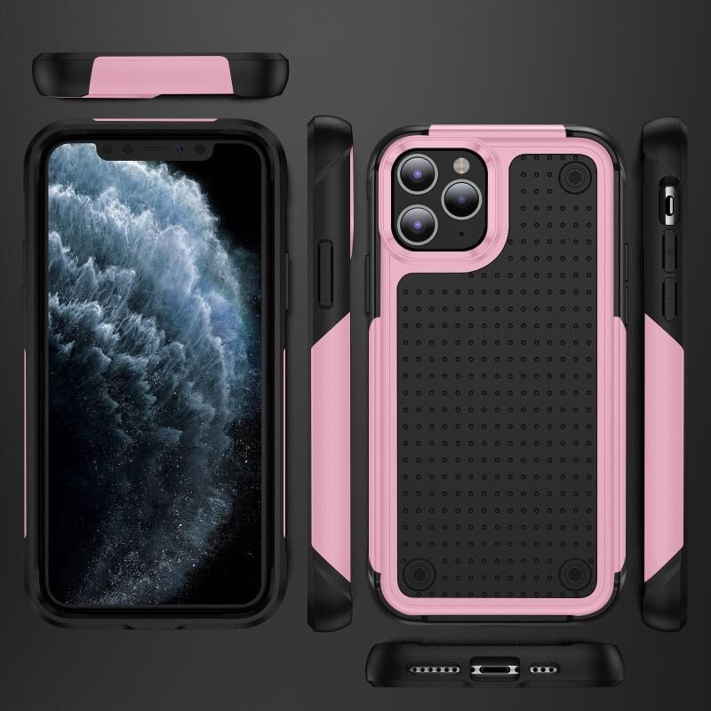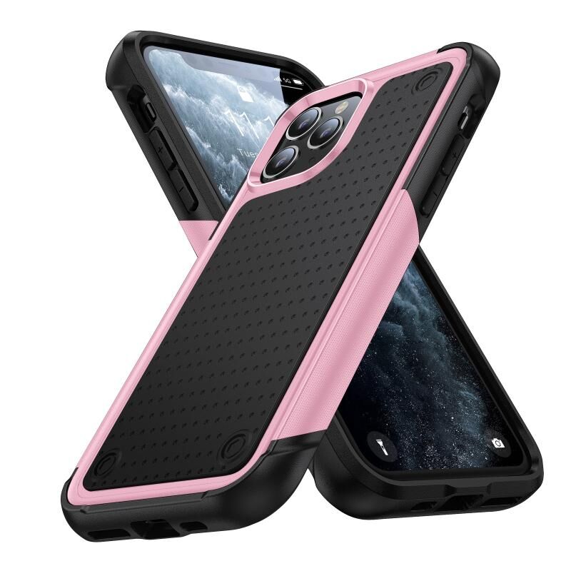 For iPhone 11 Pro PC + TPU Shockproof Protective Phone Case(Pink+Black)