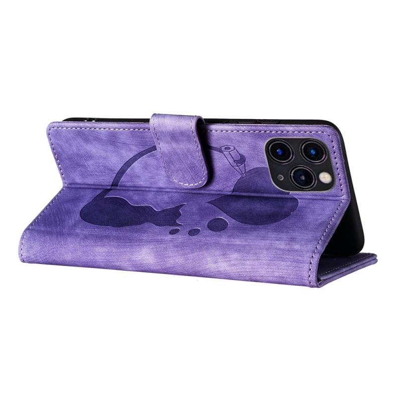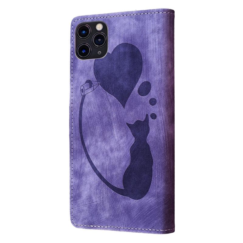 For iPhone 11 Pro Pen Heart Cat Embossed Leather Phone Case(Purple)