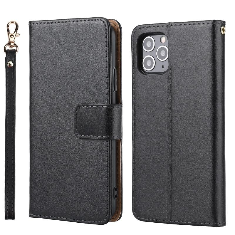 Θήκη τηλεφώνου από γνήσιο δέρμα αγελάδας με απλή ύφανση για iPhone 11 Pro (Μαύρο)