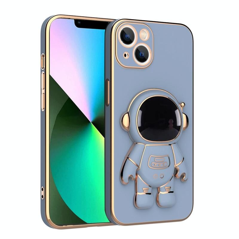 For iPhone 11 Pro Plating Astronaut Holder Phone Case (Sierra Blue)