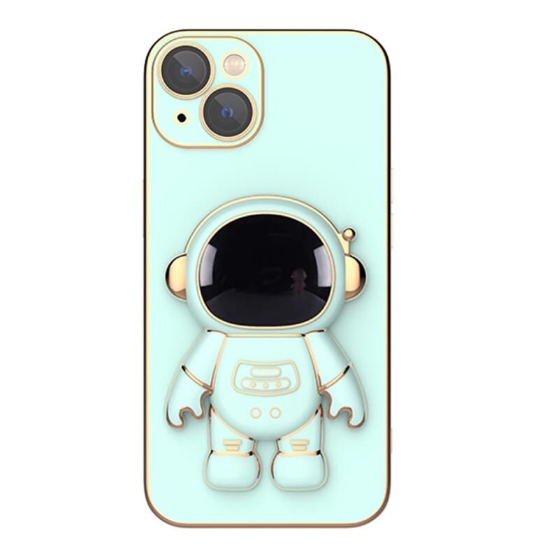 For iPhone 11 Pro Plating Astronaut Holder Phone Case with Lens Film (Matcha Green)