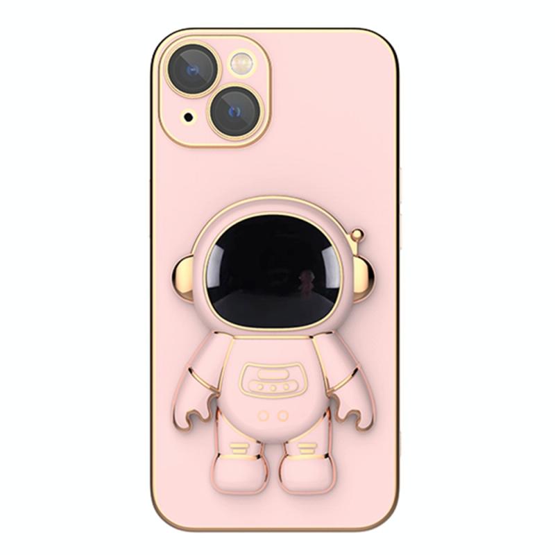 For iPhone 11 Pro Plating Astronaut Holder Phone Case with Lens Film (Pink)