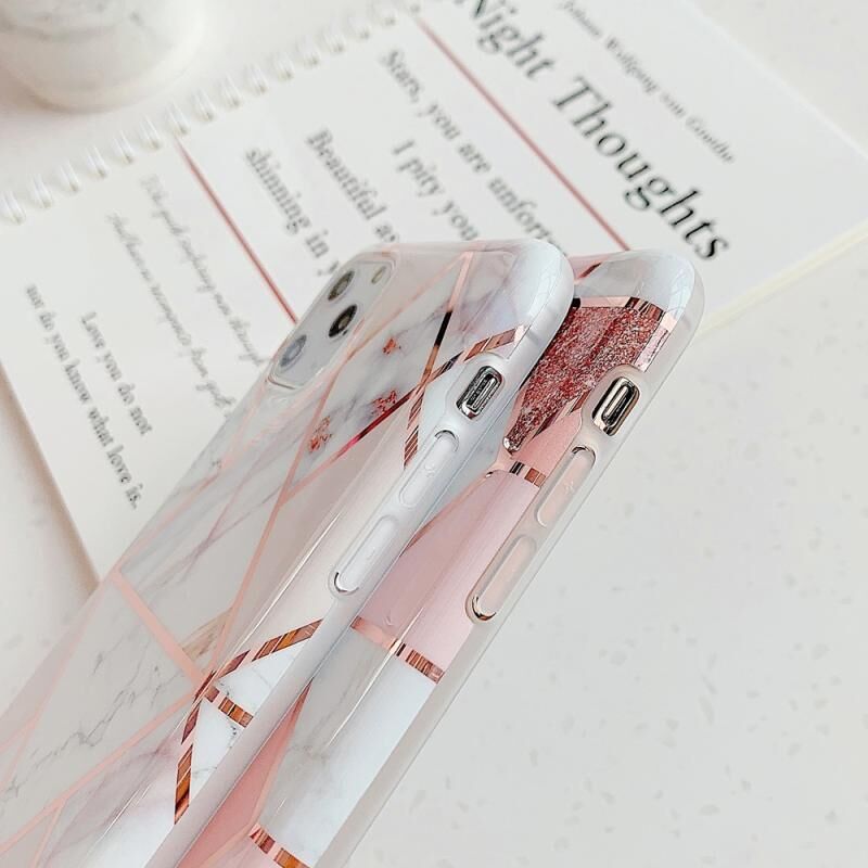Θήκη κινητού τηλεφώνου TPU με επιμετάλλωση, πολύχρωμο γεωμετρικό μοτίβο, μωσαϊκό μάρμαρο για iPhone 11 Pro (Λευκό PJ3)