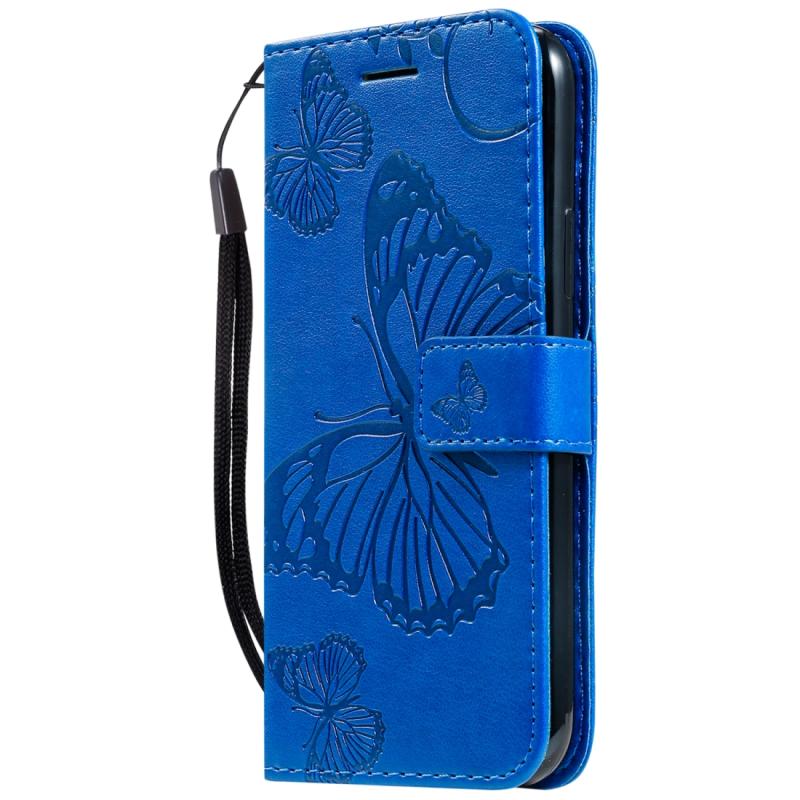 For iPhone 11 Pro Pressed Printing Butterfly Pattern Horizontal Flip PU Leather Case with Holder & Card Slots & Wallet & Lanyard (Blue)