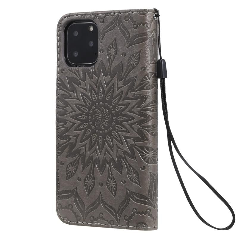 For iPhone 11 Pro Pressed Printing Sunflower Pattern Horizontal Flip PU Leather Case , with Holder & Card Slots & Wallet & Lanyard