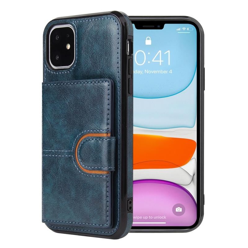Θήκη πλάτης για iPhone 11 Pro από PU + TPU + PC, ανθεκτική στις κρούσεις, με θήκη για κάρτες & στήριξη (Μπλε)