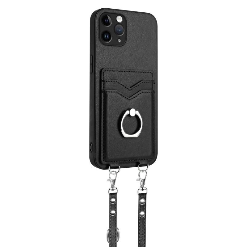 Θήκη τηλεφώνου για iPhone 11 Pro R20, με κορδόνι, δακτύλιο και θήκη για κάρτες (Μαύρο)
