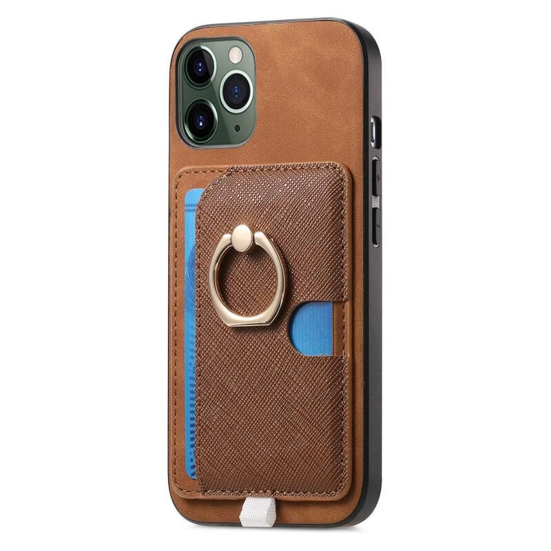 For iPhone 11 Pro Retro Cross Leather Ring Side Insert Card Bag MagSafe Phone Case(Brown)
