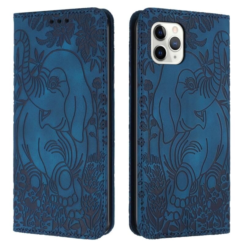 For iPhone 11 Pro Retro Elephant Embossed Leather Phone Case(Blue)
