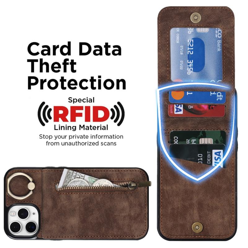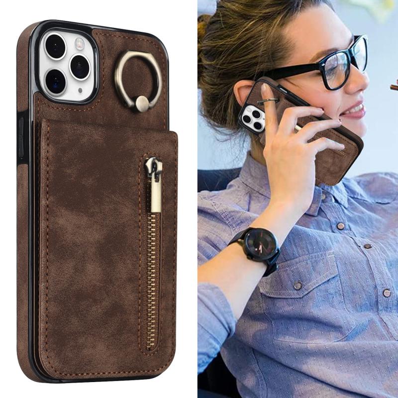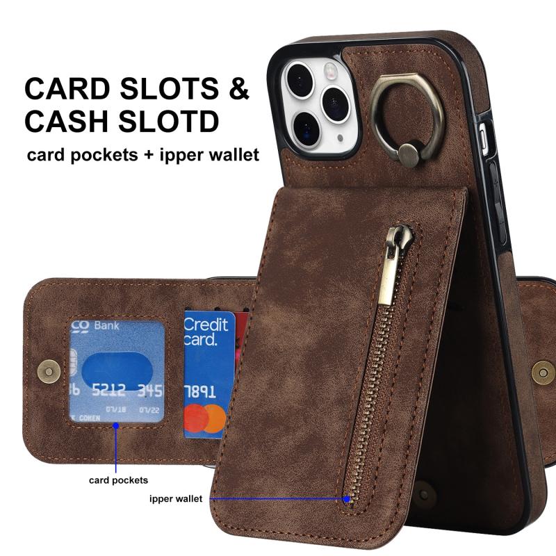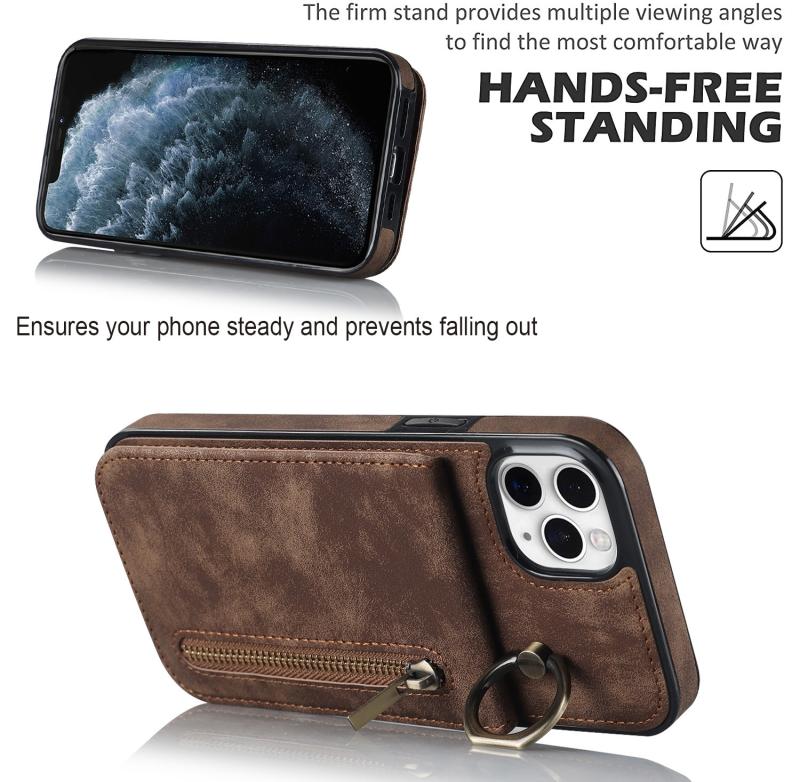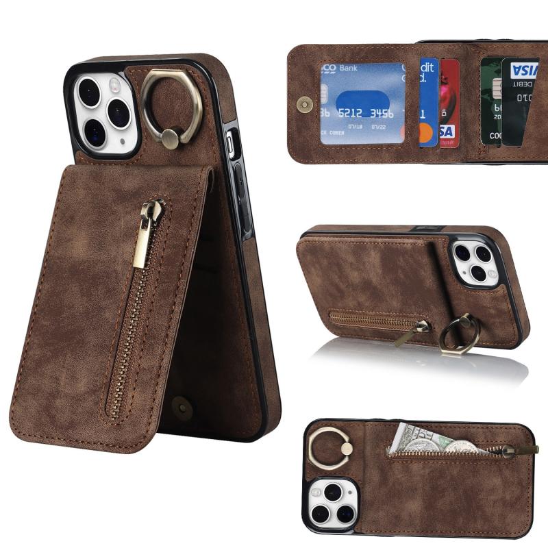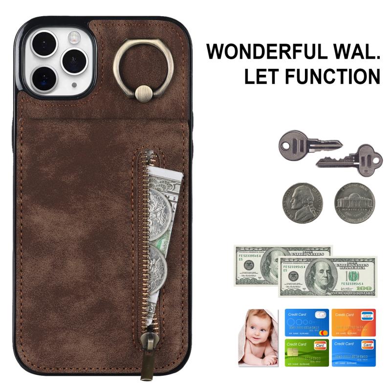 For iPhone 11 Pro Retro Ring and Zipper RFID Card Slot Phone Case(Brown)