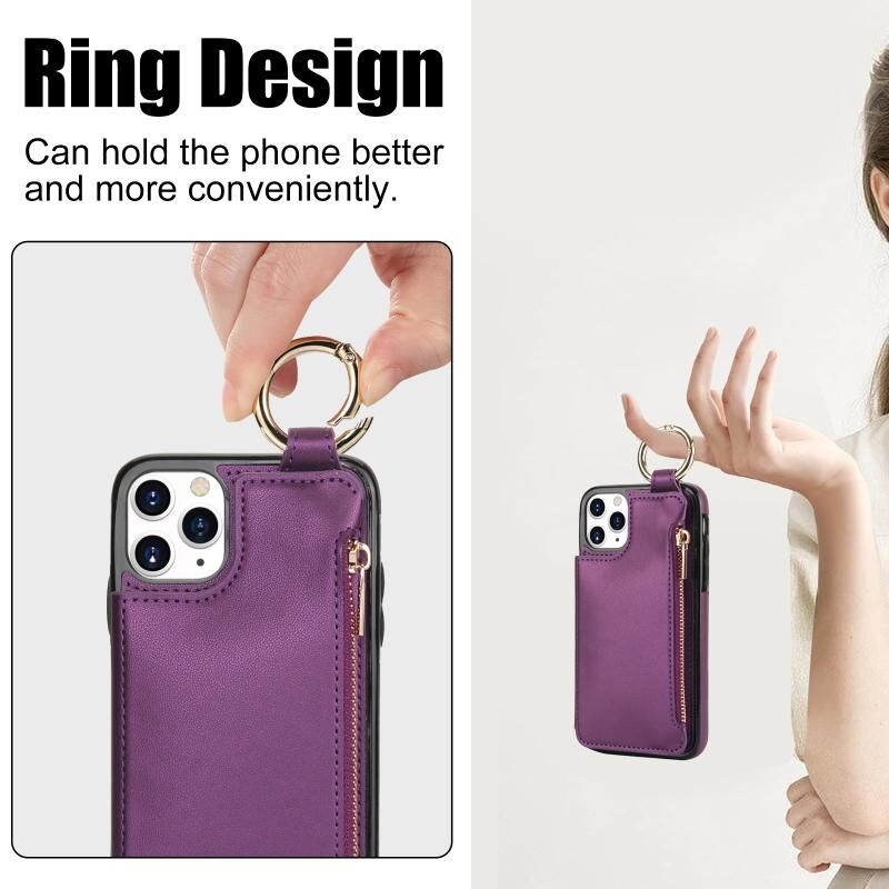 Θήκη τηλεφώνου για iPhone 11 Pro με προστασία RFID κατά της κλοπής, διπλή αγκράφα, δακτύλιο και φερμουάρ (Λευκό)