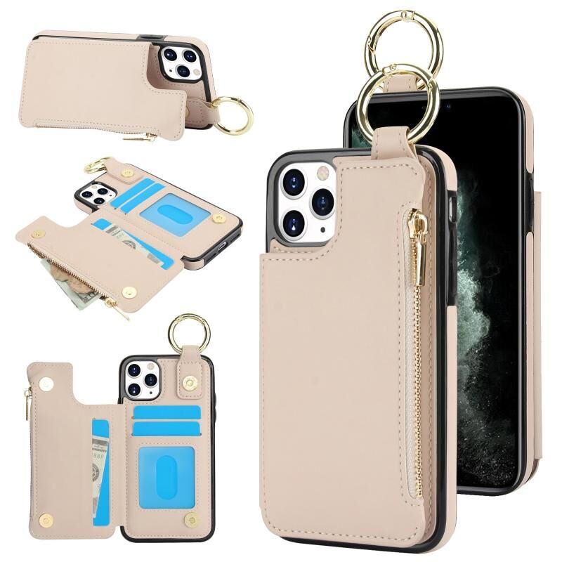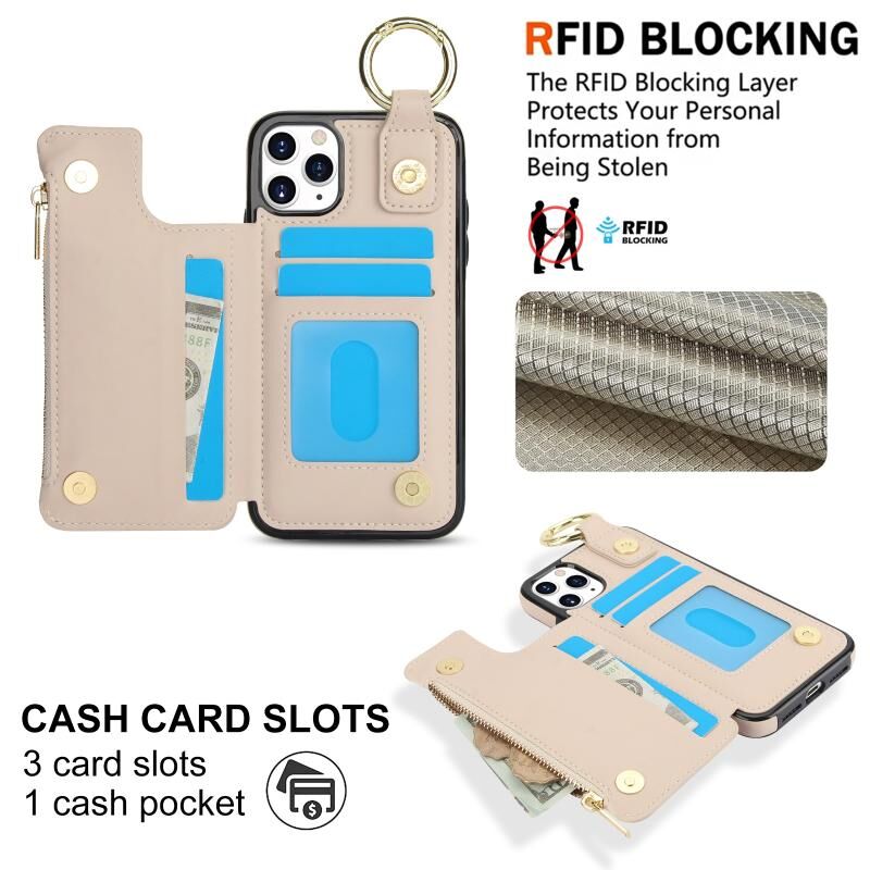 Θήκη τηλεφώνου για iPhone 11 Pro με προστασία RFID κατά της κλοπής, διπλή αγκράφα, δακτύλιο και φερμουάρ (Λευκό)