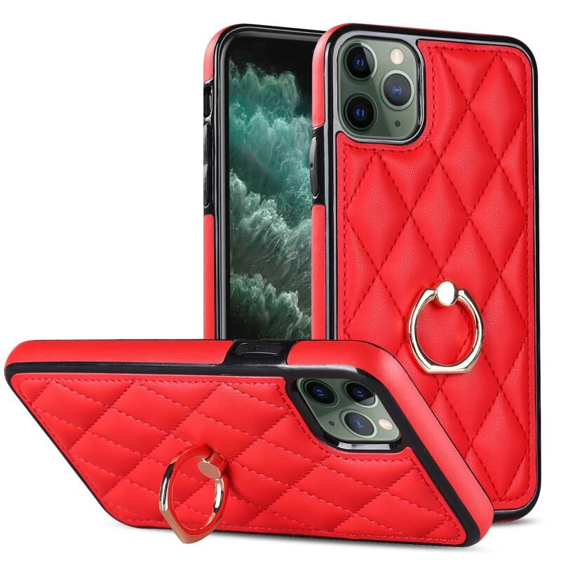 For iPhone 11 Pro Rhombic PU Leather Phone Case with Ring Holder(Red)