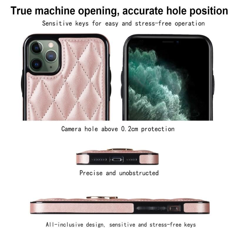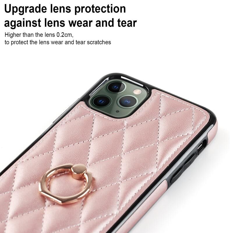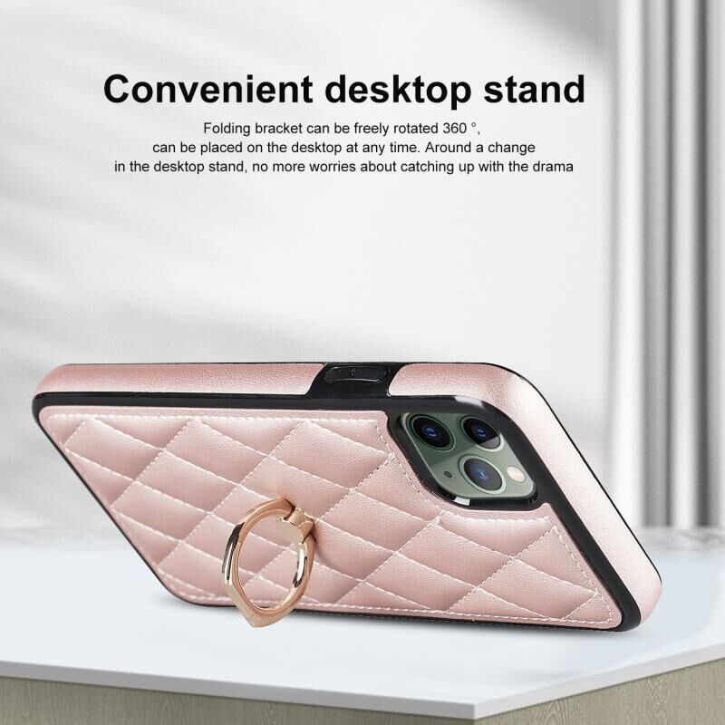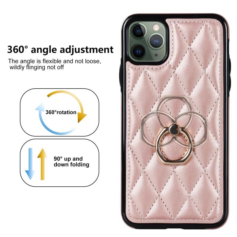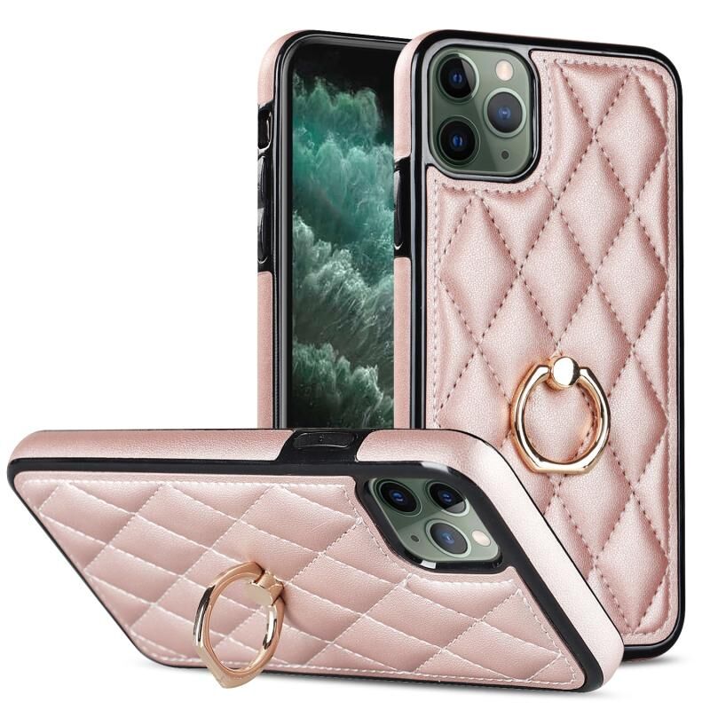For iPhone 11 Pro Rhombic PU Leather Phone Case with Ring Holder(Rose Gold)