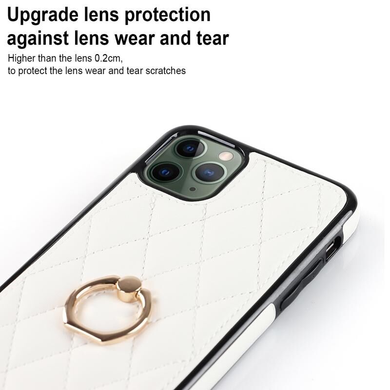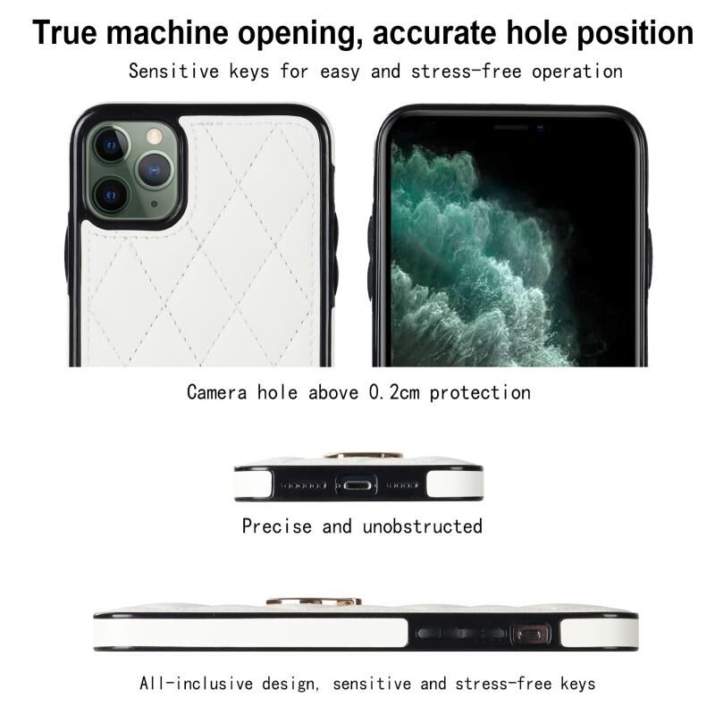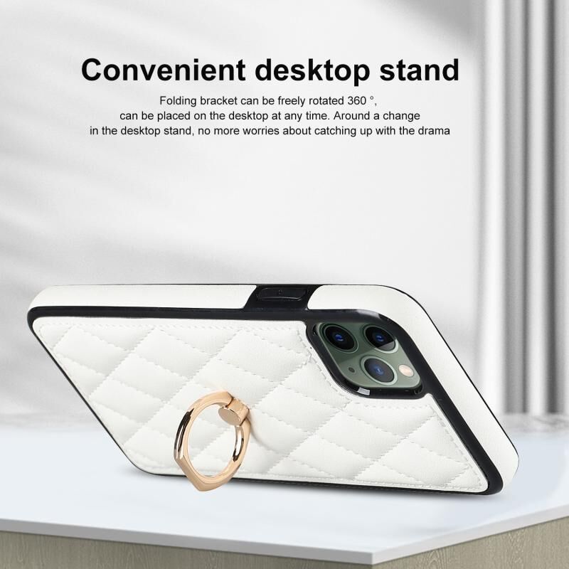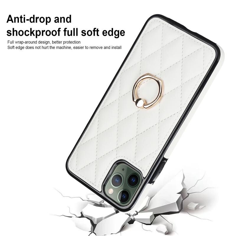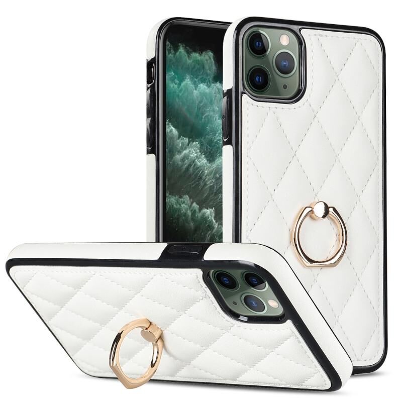 For iPhone 11 Pro Rhombic PU Leather Phone Case with Ring Holder(White)