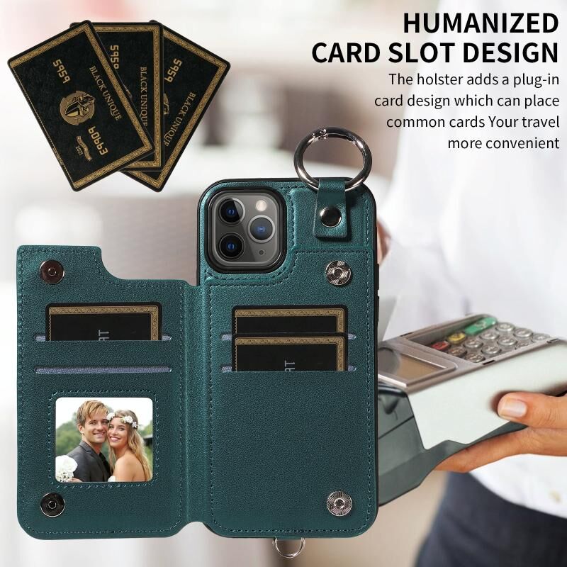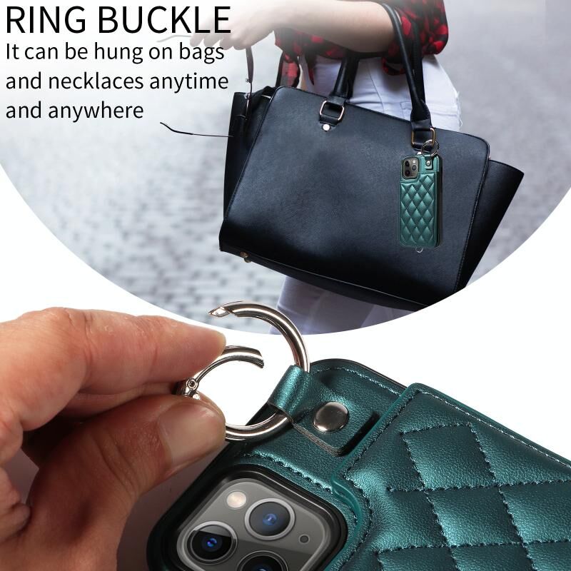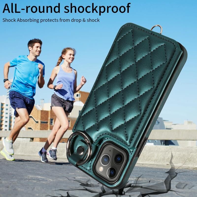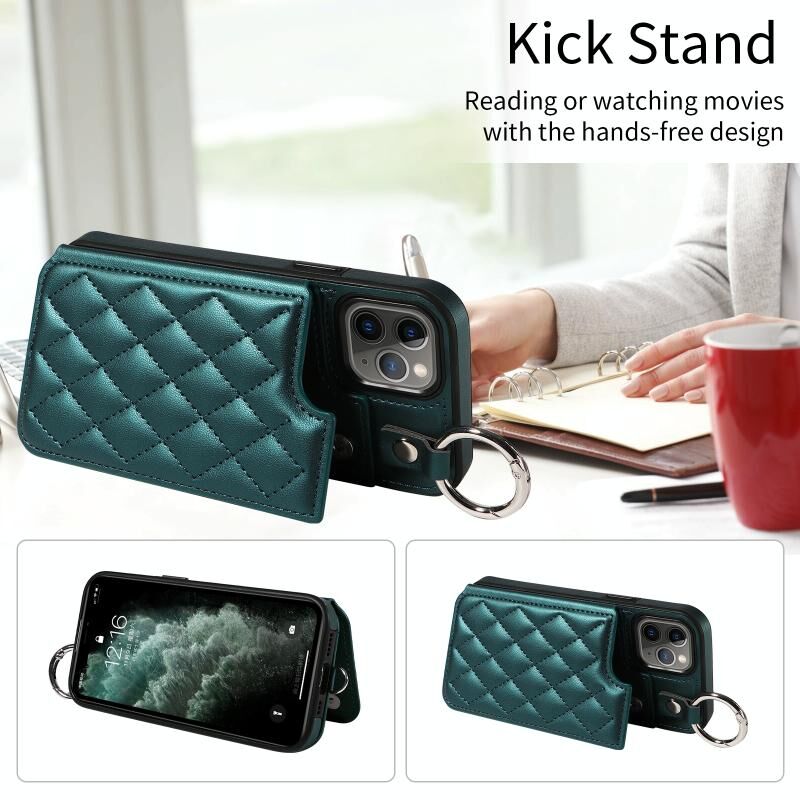 For iPhone 11 Pro Rhombic Texture Card Bag Phone Case with Short Lanyard(Green)