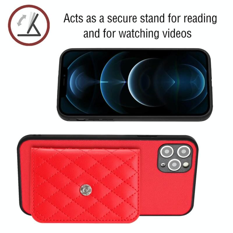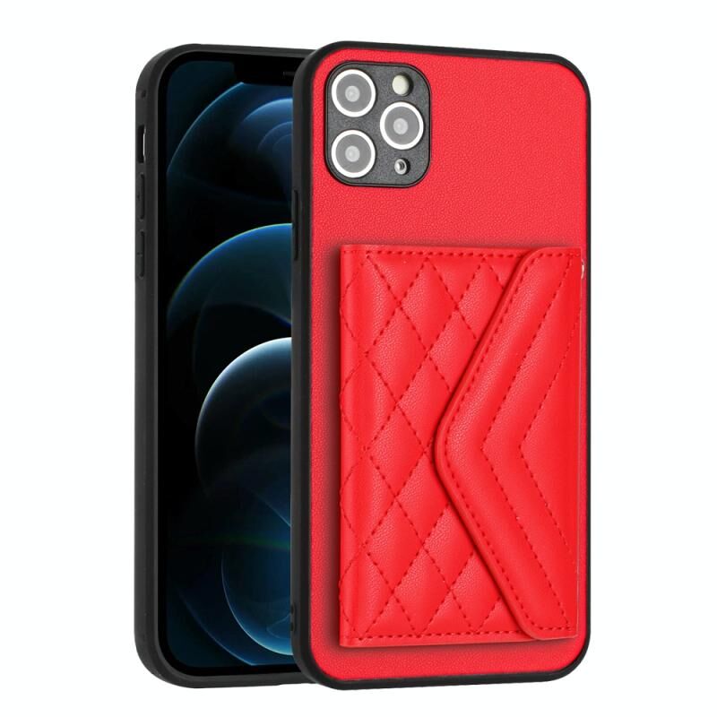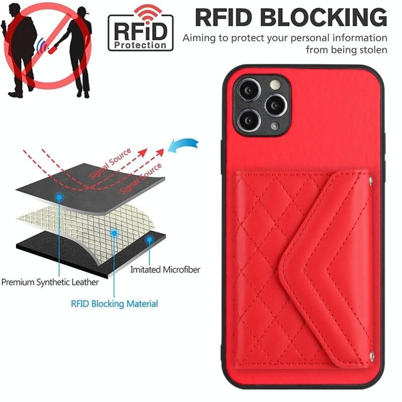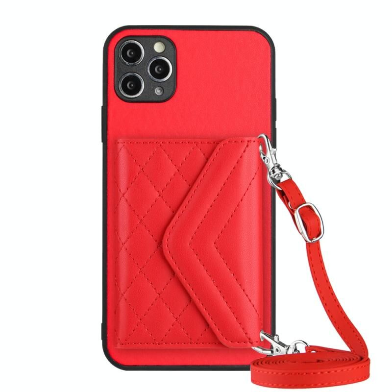 For iPhone 11 Pro Rhombic Texture Card Bag RFID Phone Case with Long Lanyard(Red)