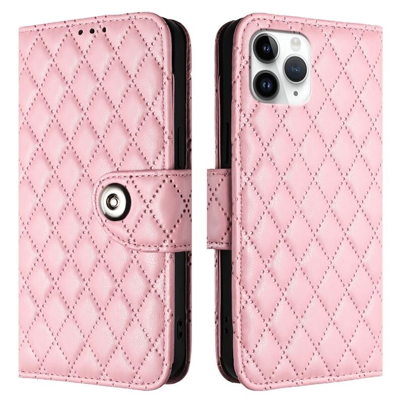 Θήκη τηλεφώνου από δέρμα με ανάγλυφη υφή ρόμβου για iPhone 11 Pro με κορδόνι (Κόκκινο Ρόδι)