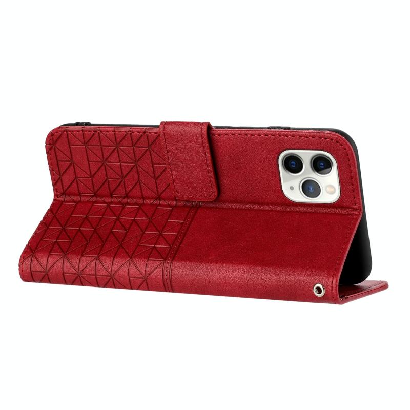 For iPhone 11 Pro Rhombic Texture Leather Phone Case with Lanyard(Red)