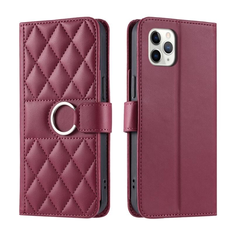 For iPhone 11 Pro Ring Buckle Rhombic Leather Phone Case(Red)