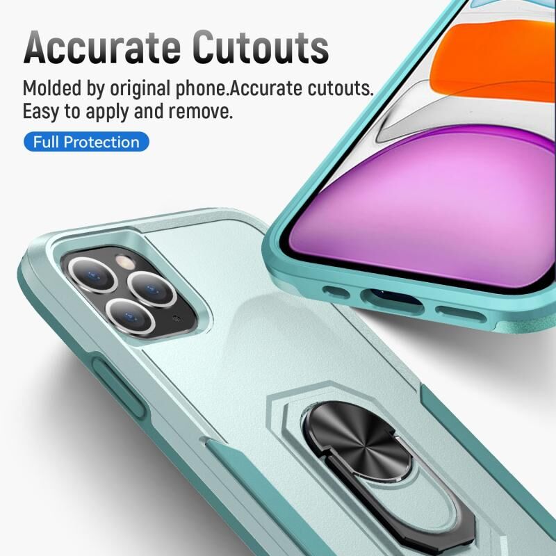 For iPhone 11 Pro Ring Kickstand Heavy Duty Shockproof Phone Case (Green)