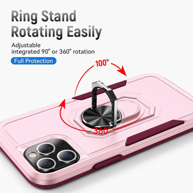 For iPhone 11 Pro Ring Kickstand Heavy Duty Shockproof Phone Case (Pink)