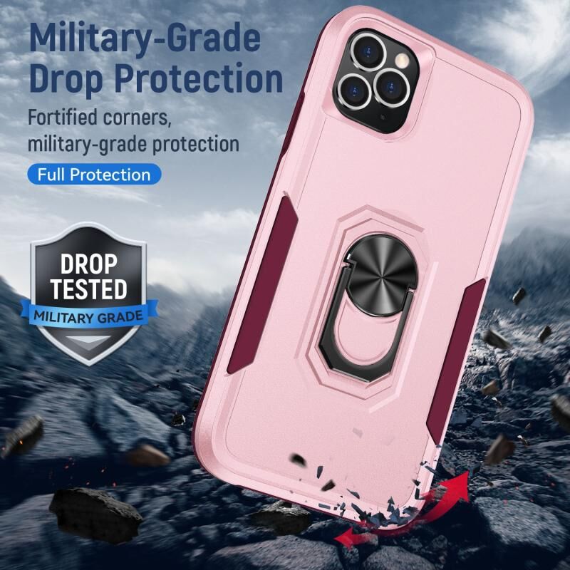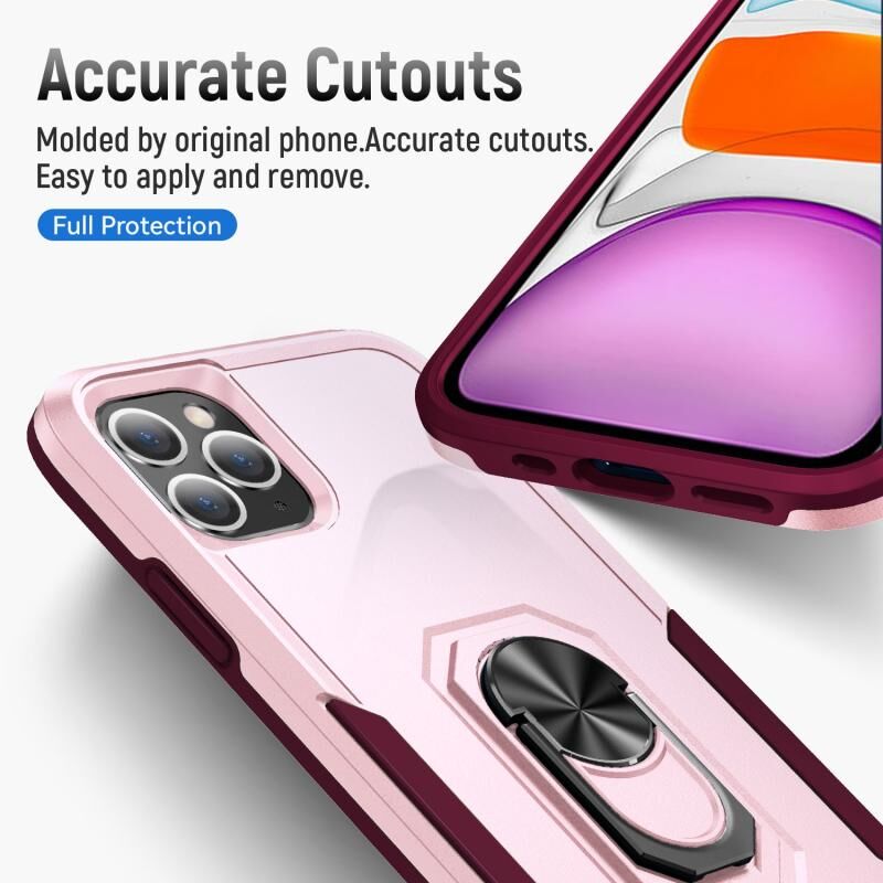 Θήκη τηλεφώνου βαρέως τύπου ανθεκτική σε κρούσεις με ενσωματωμένο στήριγμα δακτυλιδιού για iPhone 11 Pro (Λευκό)