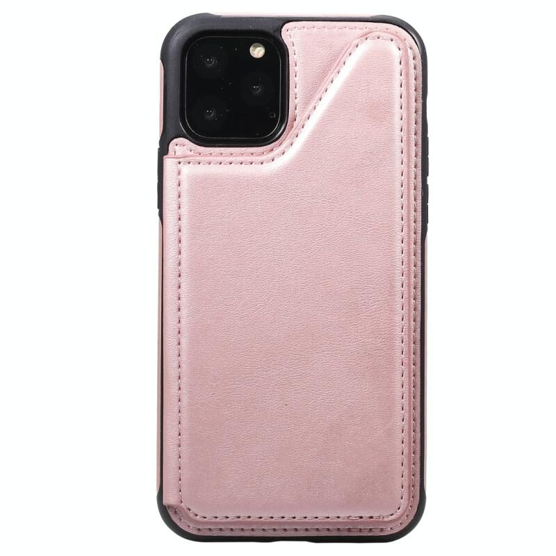 For iPhone 11 Pro Shockproof Calf Texture Protective Case with Holder & Card Slots & Frame(Rose Gold)