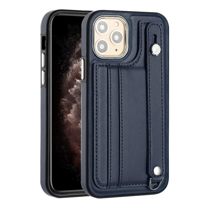 For iPhone 11 Pro Shockproof Leather Phone Case with Wrist Strap(Blue)
