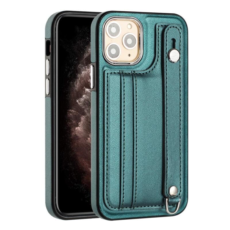For iPhone 11 Pro Shockproof Leather Phone Case with Wrist Strap(Green)