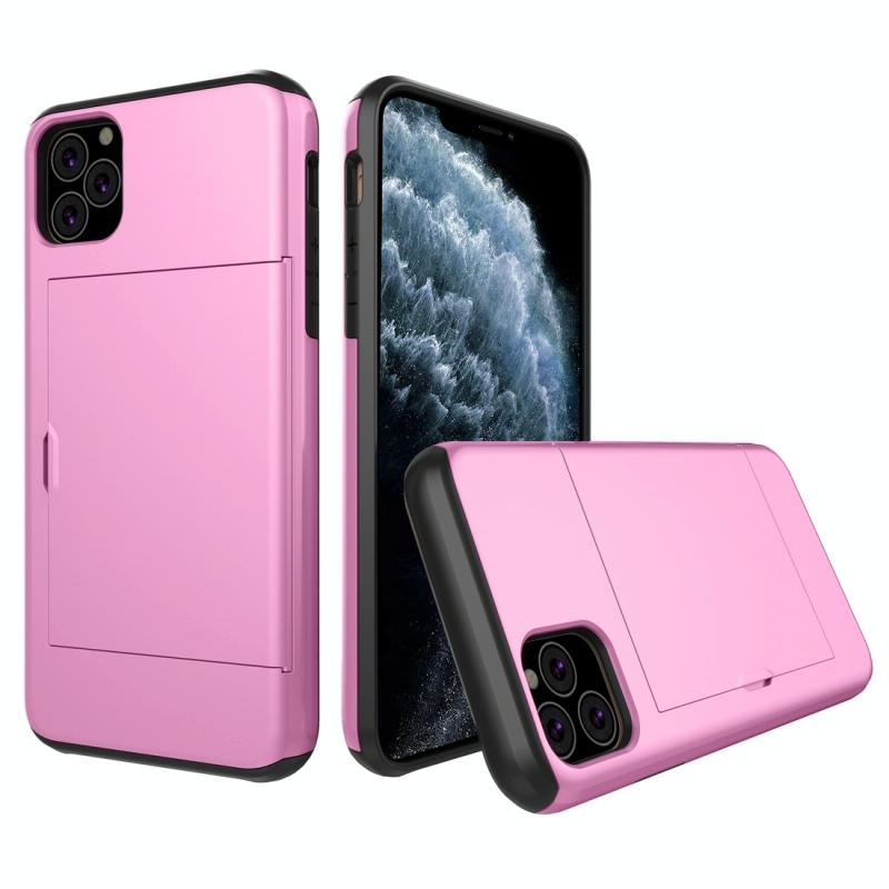 For iPhone 11 Pro Shockproof Rugged Armor Protective Case with Card Slot (Pink)