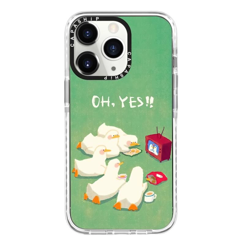 For iPhone 11 Pro Simple Illustration Pattern Full Coverage Phone Case(Watch TV Duck)