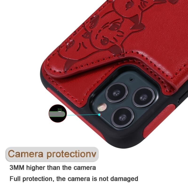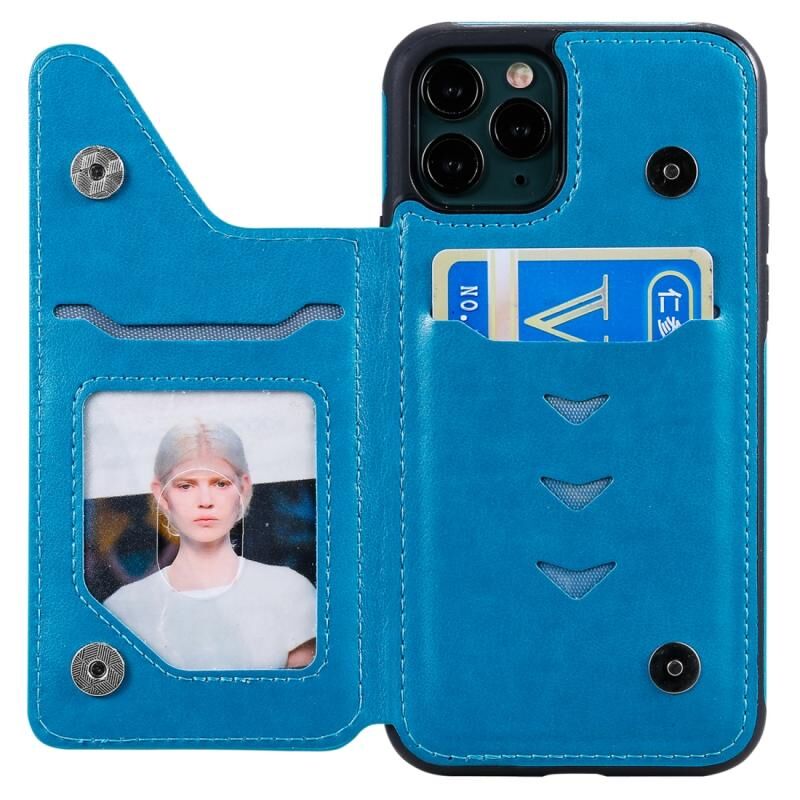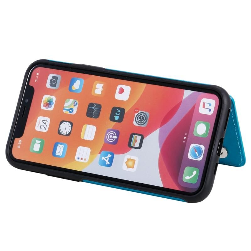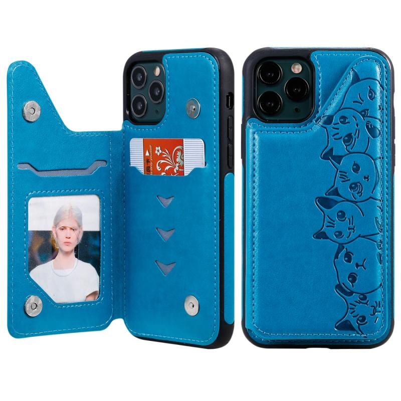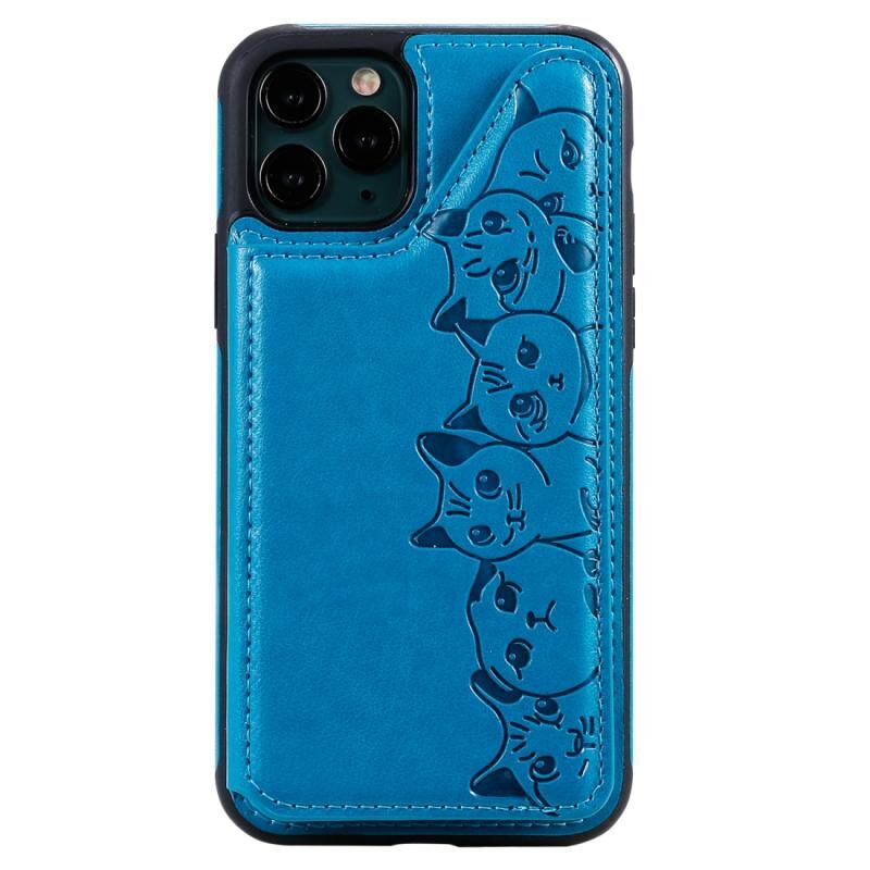 For iPhone 11 Pro Six Cats Embossing Pattern Protective Case with Holder & Card Slots & Photo Frame(Blue)