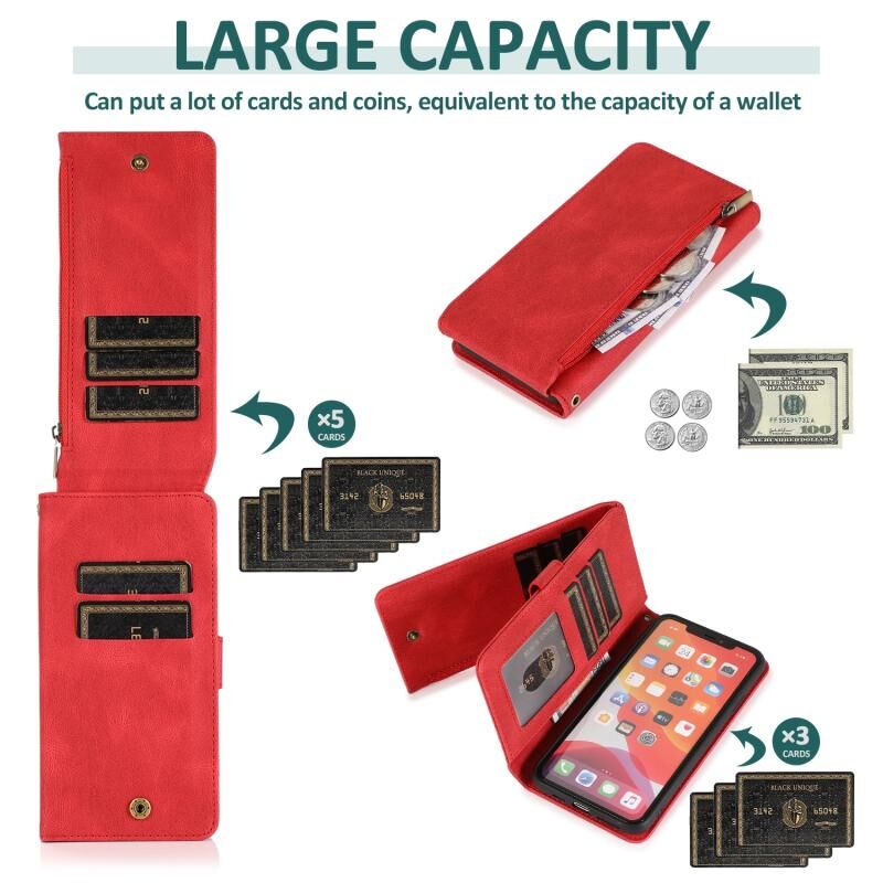 For iPhone 11 Pro Skin-feel Crazy Horse Texture Zipper Wallet Bag Horizontal Flip Leather Case with Holder & Card Slots & Wallet & Lanyard (Red)