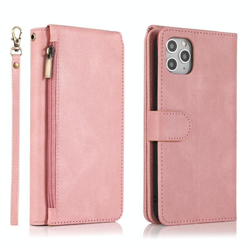 For iPhone 11 Pro Skin-feel Crazy Horse Texture Zipper Wallet Bag Horizontal Flip Leather Case with Holder & Card Slots & Wallet & Lanyard (Rose Gold)