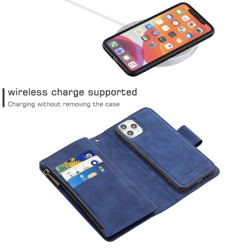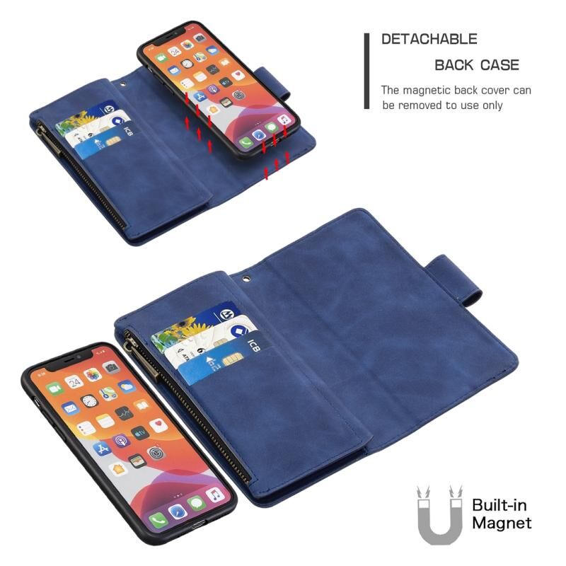 For iPhone 11 Pro Skin Feel Detachable Magnetic Zipper Horizontal Flip PU Leather Case with Multi-Card Slots & Holder & Wallet & Photo Frame & Lanyard(Blue)