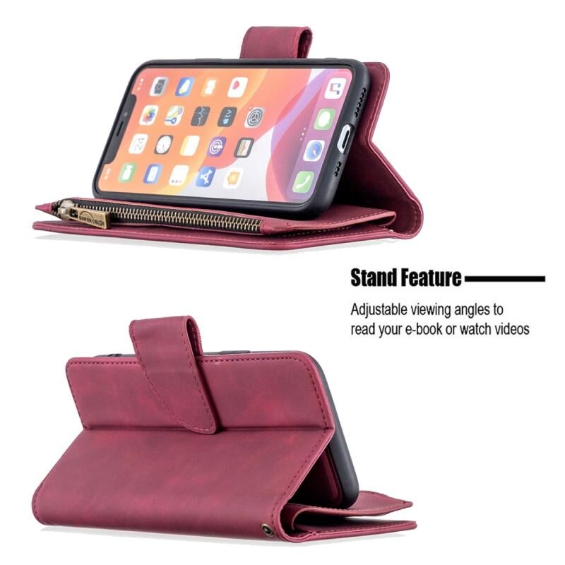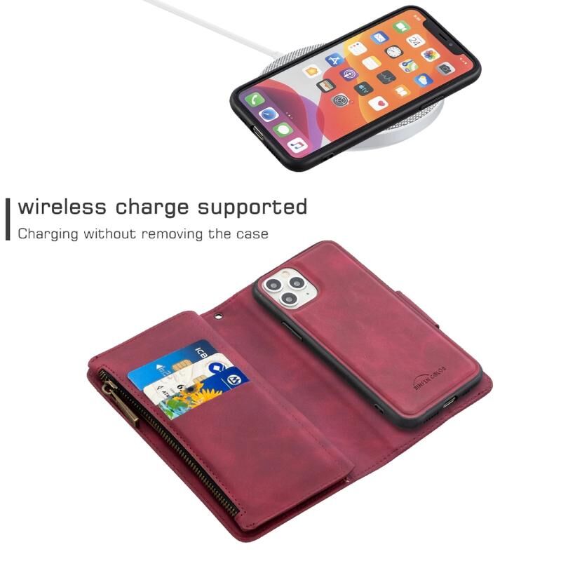 For iPhone 11 Pro Skin Feel Detachable Magnetic Zipper Horizontal Flip PU Leather Case with Multi-Card Slots & Holder & Wallet & Photo Frame & Lanyard(Red)