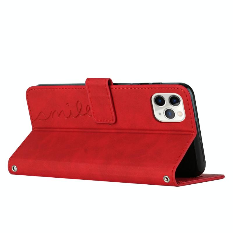 For iPhone 11 Pro Skin Feel Heart Pattern Leather Phone Case With Lanyard (Red)