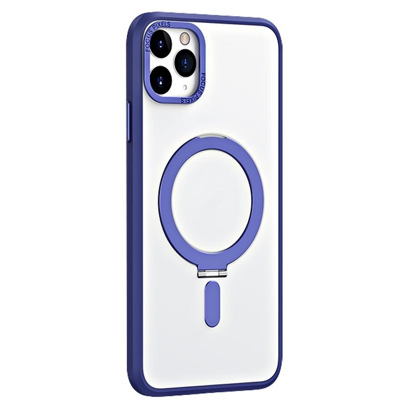For iPhone 11 Pro Skin Feel MagSafe Shockproof Phone Case with Holder(Dark Blue)