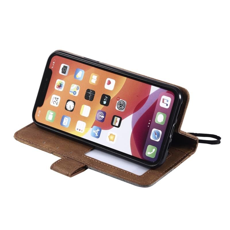 For iPhone 11 Pro Skin Feel Splicing Horizontal Flip Leather Case with Holder & Card Slots & Wallet & Photo Frame(Brown)