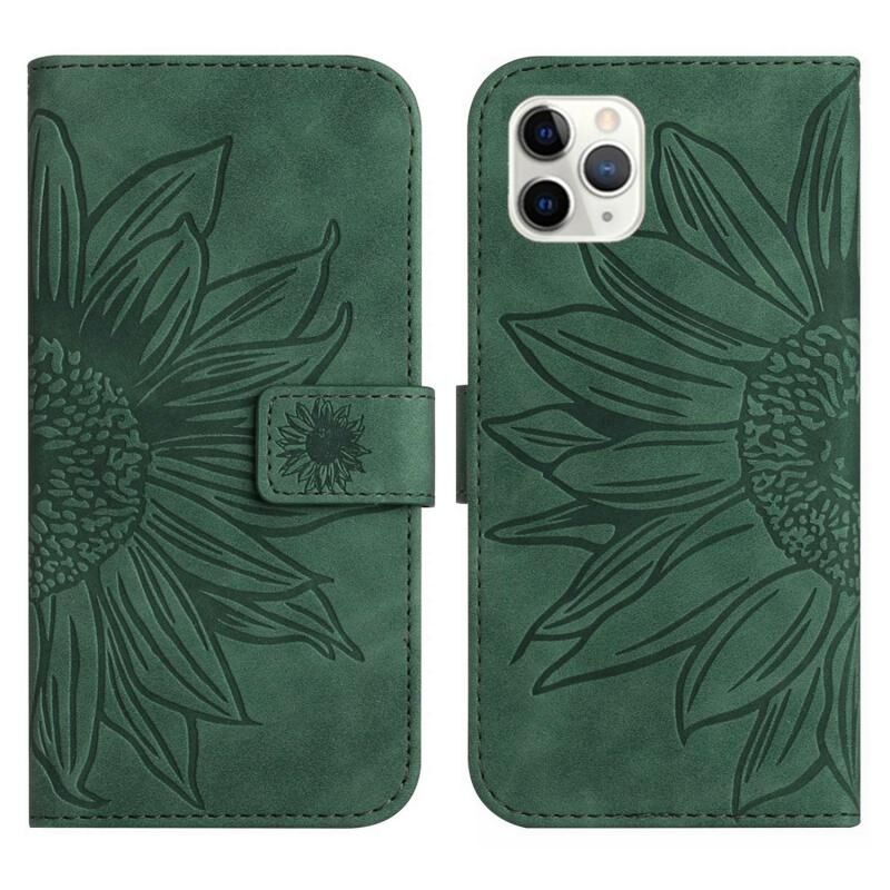 Θήκη τηλεφώνου από δέρμα με σχέδιο ηλιοτρόπιου και αίσθηση δέρματος για iPhone 11 Pro, τύπου flip, με κορδόνι (Κόκκινο)