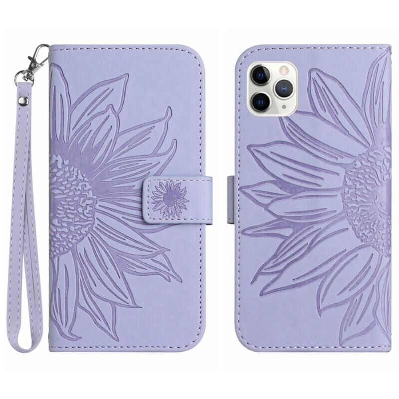 Θήκη τηλεφώνου από δέρμα με σχέδιο ηλιοτρόπιου και αίσθηση δέρματος για iPhone 11 Pro, τύπου flip, με κορδόνι (Κόκκινο)