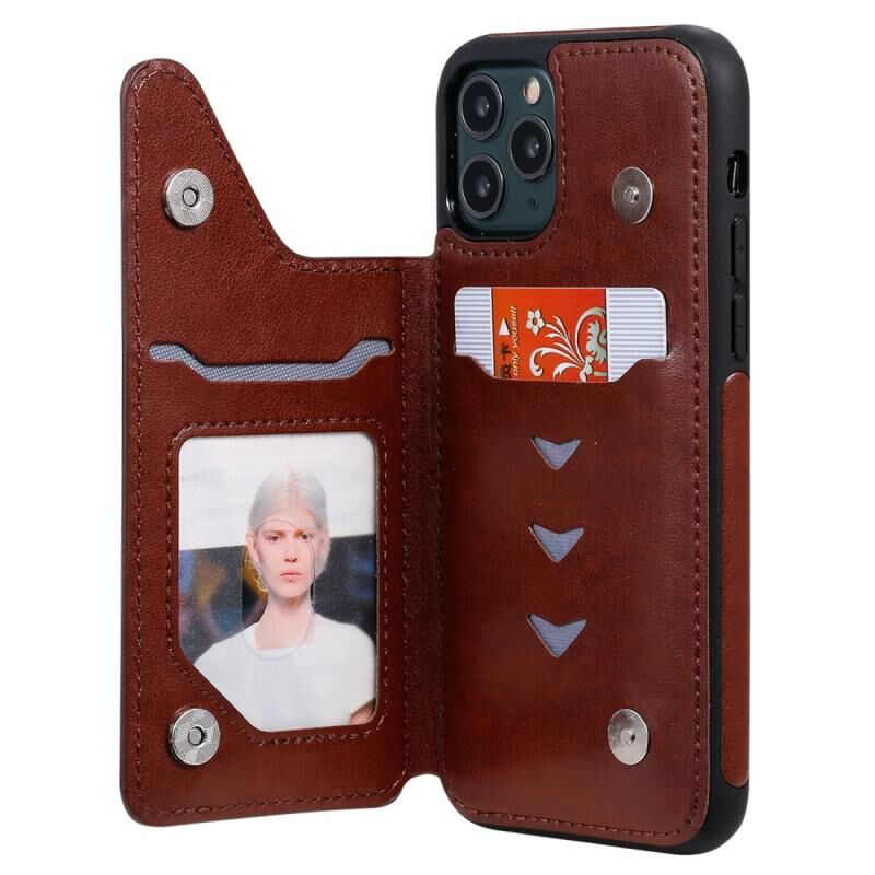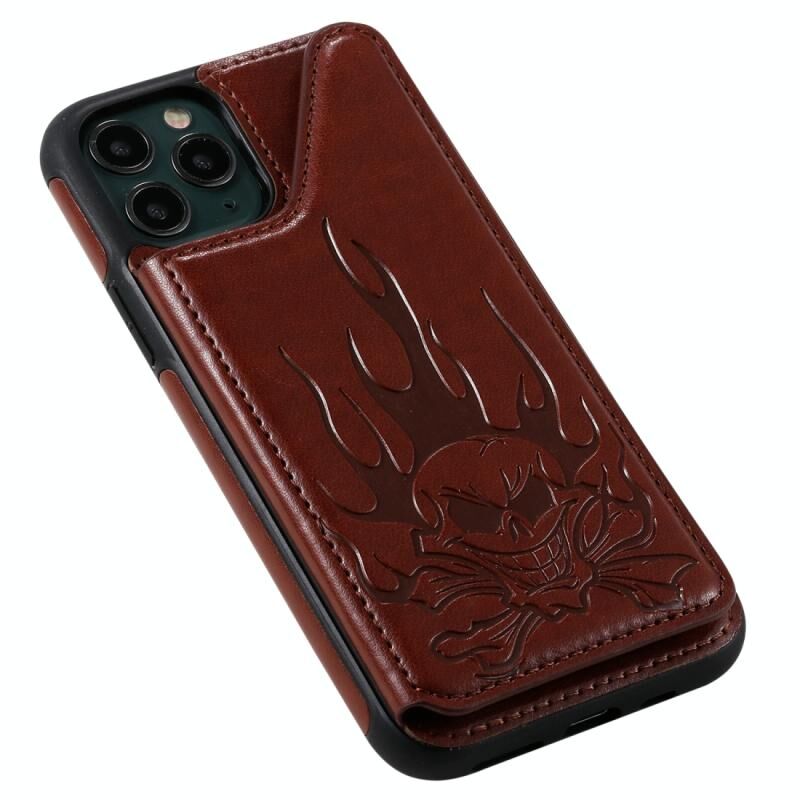 For iPhone 11 Pro Skull Head Embossing Pattern Shockproof Protective Case with Holder & Card Slots & Wallet(Brown)