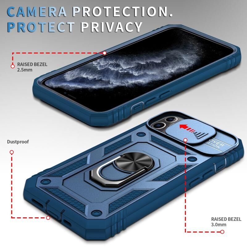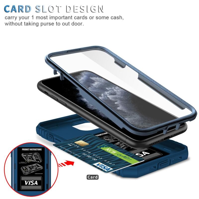 For iPhone 11 Pro Sliding Camera Cover Design TPU + PC Protective Case with 360 Degree Rotating Holder & Card Slot (Blue+Blue)