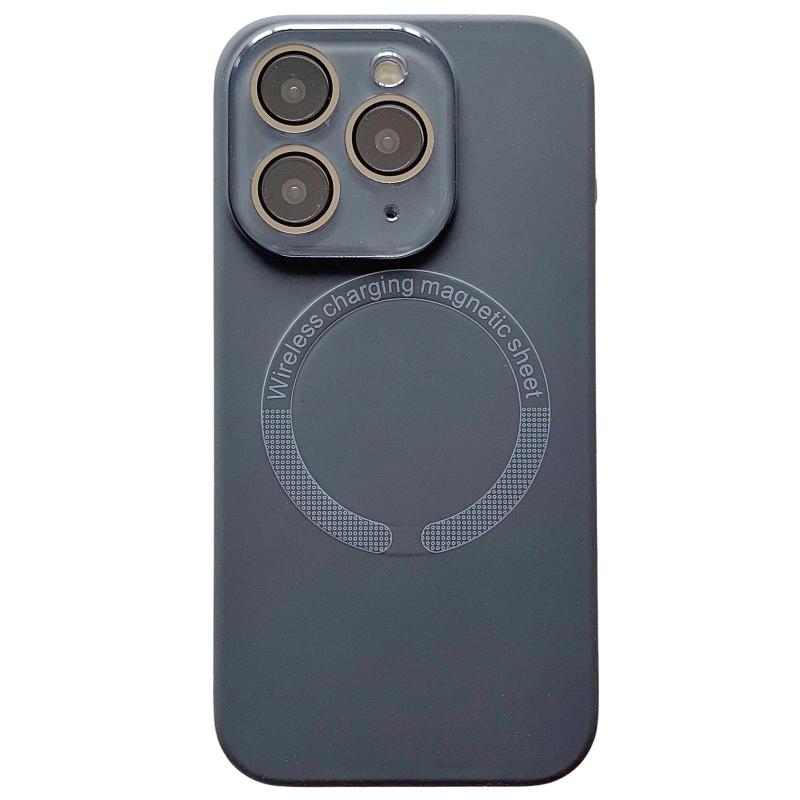 For iPhone 11 Pro Small Window Acrylic Glass Lens MagSafe Silicone Phone Case(Carbon Black)