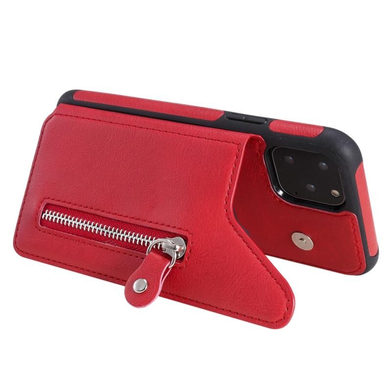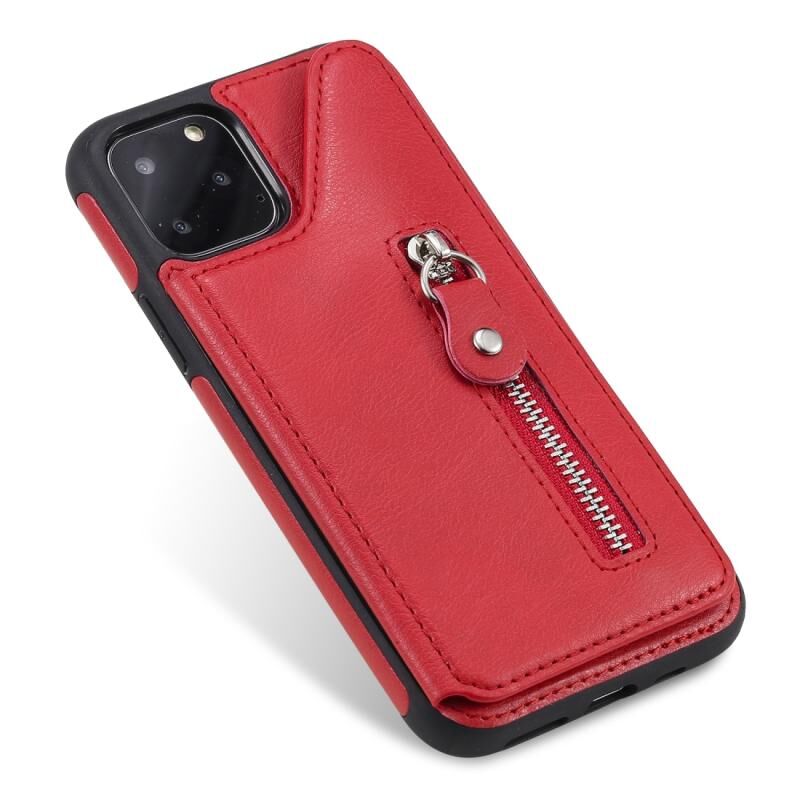 Θήκη προστασίας για iPhone 11 Pro, μονόχρωμη, με διπλό κουμπώμα και φερμουάρ, αντικραδασμική (Χρυσορόδινο)